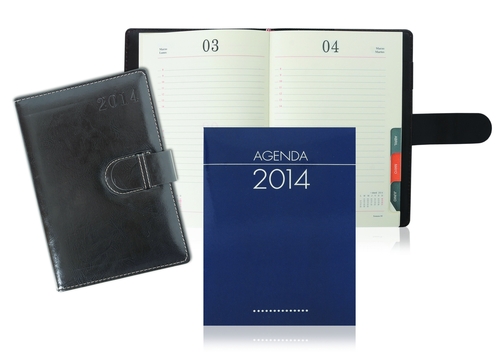 Agenda anual, formato día por hoja con separador mensual y presilla.